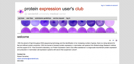 The Protein Expression Users' Club (PEUC) was a research core at Vanderbilt University Medical Center dedicated in bringing mammal protein expression at cost. We implemented the PEUC website using Drupal, and custom-developed a project management system: the website is the one stop for users to place their orders and follow-up on them, and for the core administrators to manage the core. In 2009, the core administration passed to the Vanderbilt Monoclonal Antibody Core (VMAC), and we have been working to integrate the two cores in a new website: the Vanderbilt Antibody & Protein Resource (VAPR). |